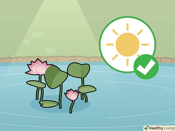Тримайте лотос під прямим сонячним світлом. лотоси люблять світло, їх необхідно тримати під прямими сонячними променями хоча б 5-6 годин на день. Якщо ставок частково затінений, спробуйте підрізати або прибрати рослинність по його берегах, щоб на нього потрапляло більше сонячного світла. [19]- У європейській частині Росії, наприклад на Кубані, лотос цвіте приблизно з початку липня по кінець вересня. Квіти лотоса розкриваються рано вранці і починають закриватися в другій половині дня. Окремі рослини цвітуть протягом 3-5 днів, потім квіти в'януть. Процес цвітіння повторюється протягом решти місяців вегетативного періоду.