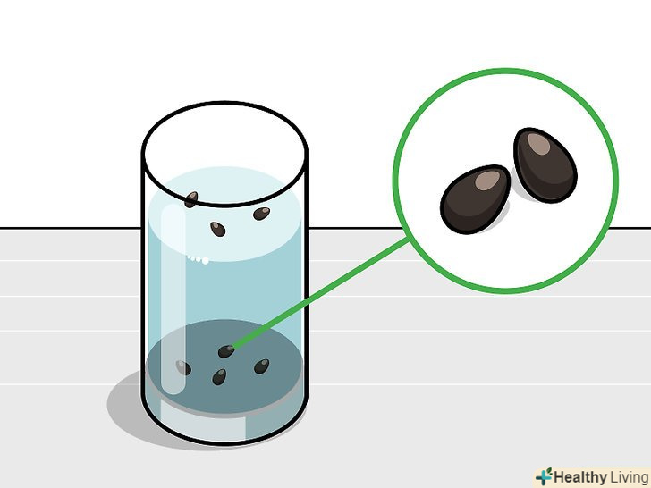 Покладіть насіння в теплу воду. наберіть воду в скляний або прозорий пластиковий стакан, щоб вам було видно, як насіння пустять пагони. Використовувати дехлорированную воду , температура якої становить 24-27°C. [3]- Через день насіння опустяться на дно склянки і збільшаться приблизно в два рази. Ті насіння, які залишаться плавати на поверхні, майже напевно не дадуть сходів, тому видаліть їх, щоб вони не забруднили воду.