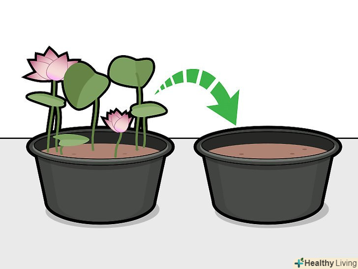 Щороку пересаджуйте бульби. ранньою весною, при перших ознаках зростання, пересадите лотос в свіжий грунт і перенесіть його в первісну ємність (якщо вона збереглася). Після цього знову розмістіть лотос в ставку приблизно на тій же глибині, що і раніше. [25]- Якщо в попередній рік лотос поширився по ставку, перевірте, чи немає в ємності отворів і тріщин. Можливо, доведеться використовувати більш простору ємність, щоб лотос не розростався за її межі.
