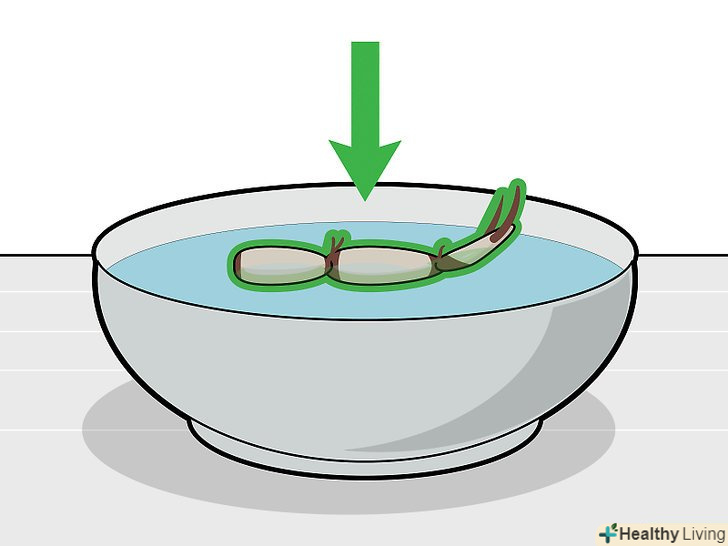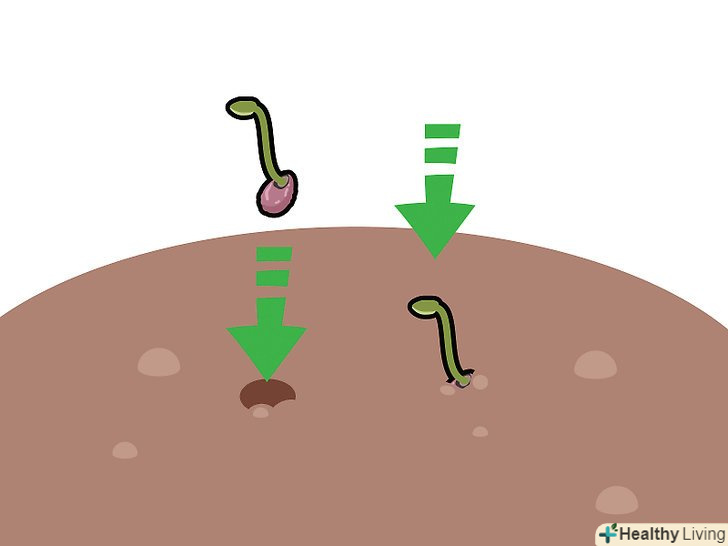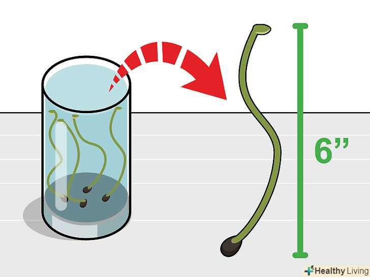 Коли пагони досягнуть довжини 15 сантиметрів, дістаньте їх з води. через 4-5 днів перебування у воді насіння повинні прорости. Однак якщо занадто рано перемістити їх в грунт, вони, швидше за все, зів'януть. [6]- Якщо чекати занадто довго, на пагонах з'являться листя. Можна пересадити їх і після цього — просто простежте, щоб листя не опинилися під шаром грунту. [7]