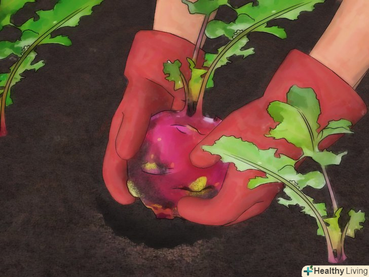 Збирайте урожай кольрабі висмикуючи рослина повністю. кольрабі дозріли, коли стебла близько 5-7,5 см. в діаметрі, і цибулини великі і виглядають здоровими. Цибулини різних сортів виростають до різних розмірів, так що частково ви будете прислухатися до власного судження. Якщо вони перезріють, кольрабі стануть трохи дерев'яними (жорсткими) і неприємними.