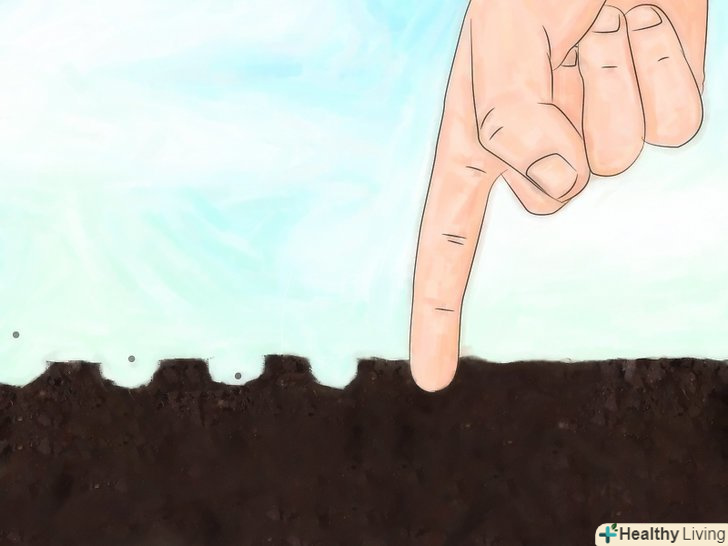 Садіть насіння в рівний ряд. насіння кольрабі потрібно садити у вологий грунт, на глибину, приблизно в 1 – 1,5 см., на відстані 2,5 см. один від одного, по одному насіння в кожну ямку. Пальцем зробіть невелику ямку в землі, потім злегка засипте зернятко землею. Залиште між рослинами хоча б по 2,5 см..- Кольрабі потрібно садити в ряди, які повинні знаходитися на відстані близько 30 см, щоб дати їм місце для розростання і дозрівання.