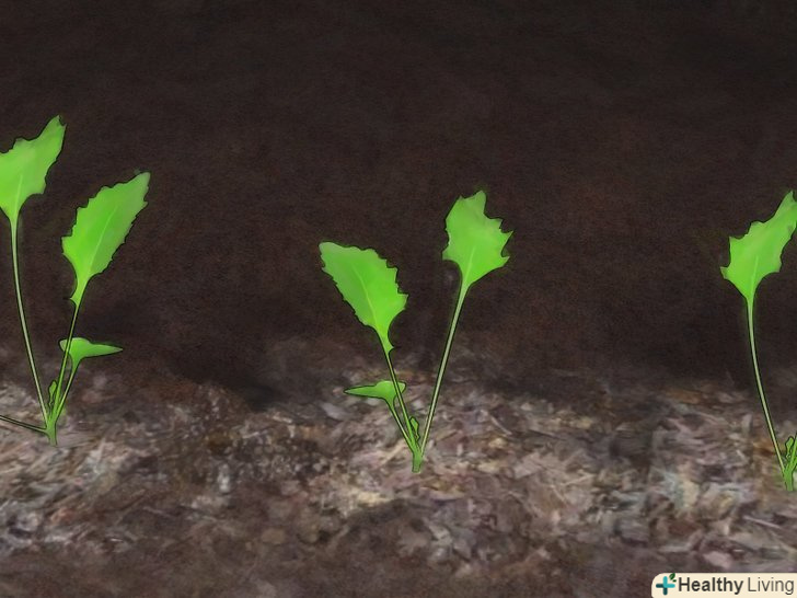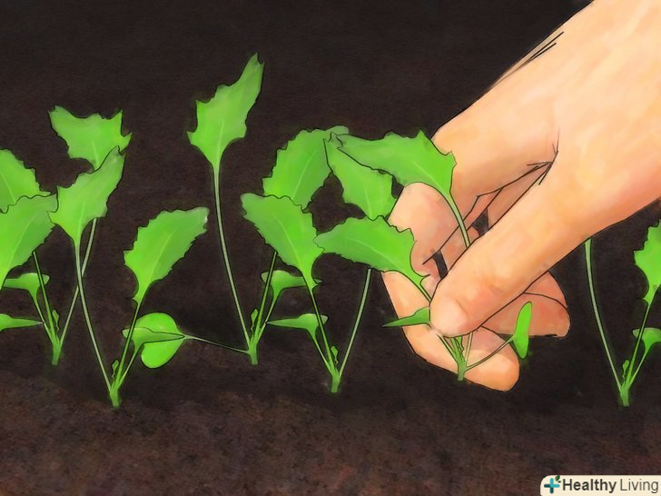 Прорідити процвітаючі саджанці на відстані приблизно 20 см один від одного. через пару тижнів рослини повинні вирости приблизно на 15 см у висоту, і ви можете почати проріджувати найбільш успішні з них, щоб дати їм місце для зростання. Обережно викопайте рослини і пересаджуйте їх так, щоб вони були на відстані приблизно 20 см один від одного, пересаджуючи деякі з них в інші місця в саду, якщо потрібно.- Зелень молодих кольрабі можна вживати в сирому вигляді, в салатах, або ж можна закинути в розпечене масло, як будь-яку польову зелень. Це унікальний і багатий на поживні речовини спосіб приправки страви.