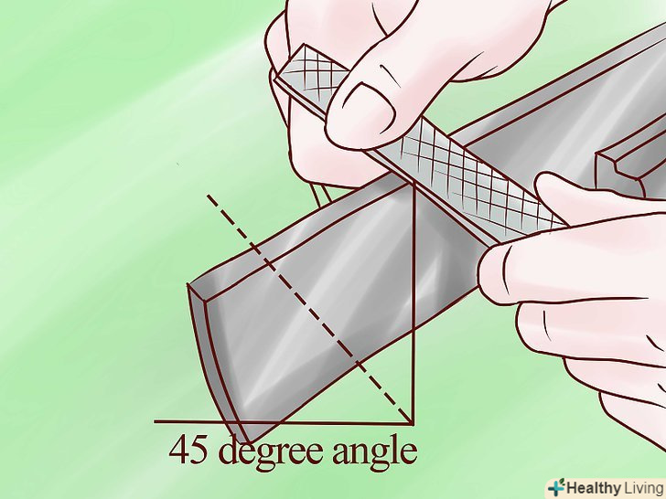 Проведіть напилком уздовж скошеного краю леза. Тримайте напилок під кутом загострення леза. Найчастіше цей кут становить 40-45 градусів, але звіртеся з виробником газонокосарки, щоб дізнатися точний кут.- Рухайте напилком короткими плавними рухами уздовж вістря.