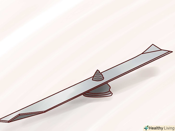 - Якщо у вас немає балансира, покладіть лезо на дерев'яний дюбель. Якщо одна зі сторін піднімається верх, наточіть протилежну сторону леза і знову перевірте його балансування.