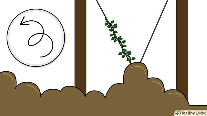 Коли з'являться стебла, привчіть їх витися по решітці. як тільки пагони досягнуть висоти близько 15 сантиметрів, їх слід «навчити» спиратися об грати і рости по ній вгору. Розташуйте поблизу рослин решітку і акуратно зачепите пагони за її підставу.- Продовжуйте обвивати пагони навколо решітки протягом декількох днів. Через деякий час хміль почне сам витися за годинниковою стрілкою навколо підпори.