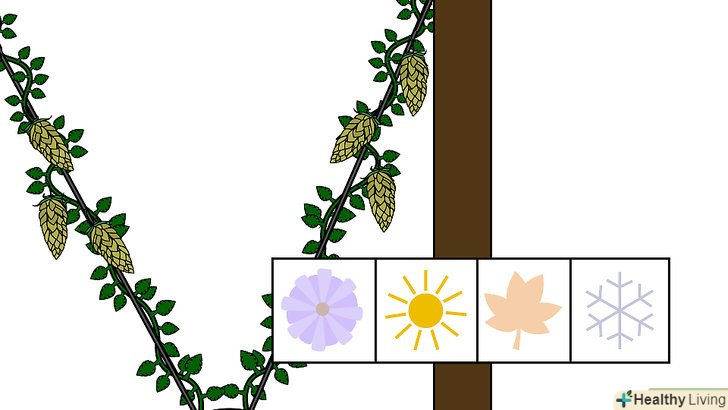 Оживіть хміль навесні. розкопайте лопатою кореневища і вкоротите коріння на кожному з них. Удобрити навколо них грунт і зробіть насип висотою близько 30 сантиметрів. Додайте шар мульчі і поливайте грунт, поки хміль не проросте знову. [20]