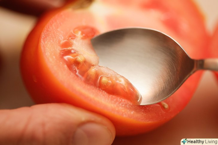 Вичерпніть внутрішню частину помідора. так ви дістанете і насіння, і рідина, яка їх оточує.