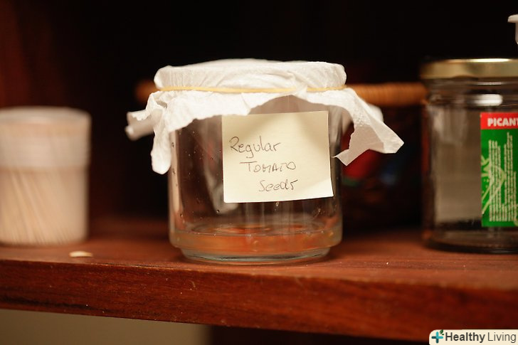 Накрийте ємність паперовим рушником, марлею або поліетиленовою плівкою. обов'язково залиште трохи порожнього місця для циркуляції повітря. Випаровування повітря сприяє заквасці насіння.- Якщо ви накриєте ємність поліетиленом, не забудьте зробити в ньому кілька отворів.