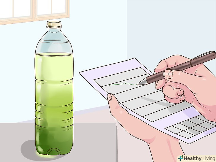 Додайте у воду поживні речовини. у природі водорості проживають спільно з іншими водними мешканцями. Ці істоти створюють баланс в підводній екосистемі і забезпечують їх достатньою кількістю поживних речовин, на зразок нітратів, фосфатів і силікатів. Оскільки в пляшці з водою немає цих поживних речовин і мікроелементів (на зразок мікропримісей металів і вітамінів), їх потрібно додати самостійно. Купуйте їх в магазині або візьміть трохи води з акваріума або ставка і додайте в ємність. [5]- Вода зі ставка або акваріума може забруднити живильне середовище різними частинками.