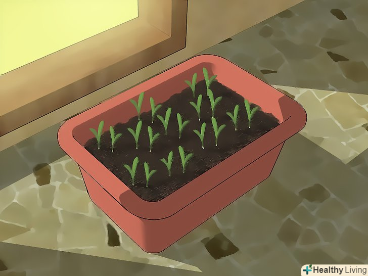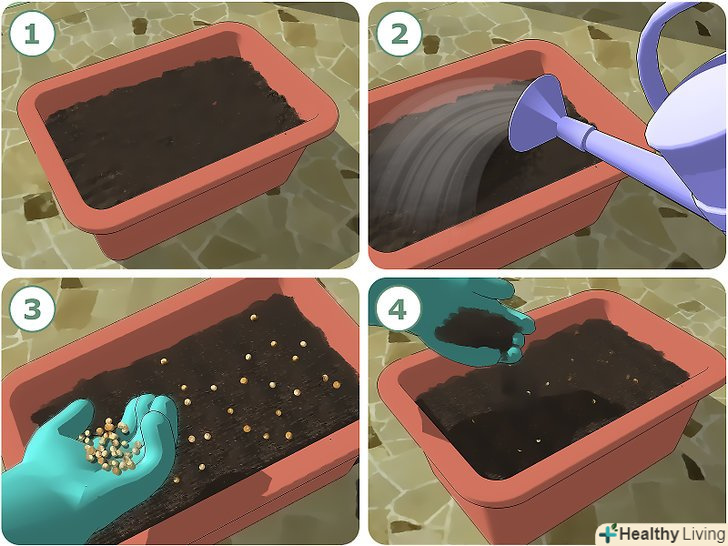 Посадіть насіння. заповніть горщик землею. Ви також можете додати трохи добрив. Зволожте землю невеликою кількістю води, щоб вона стала трохи вологою. Рівномірно розсипте насіння по грунту. Зверху засипте шаром землі товщиною один сантиметр.