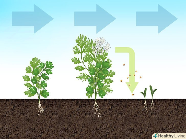- Також можете дати насінню впасти в землю, щоб рослина сама себе засіяла. Таким чином, в наступному сезоні у вас знову буде рясний урожай коріандру. [5]
