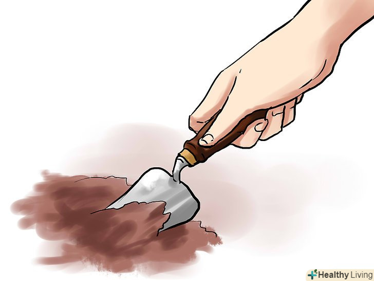 Викопайте неглибоку ямку. в ямку повинні легко поміщатися коріння рослини. Саджанець повинен бути на тій же глибині, що і в транспортувальному оригінальному горщику. Не саджайте саджанець глибше, інакше стебло може загнити.