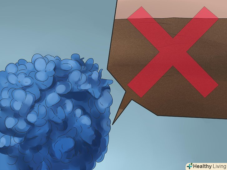 Не саджайте гортензії біля будь-яких бетонних конструкцій. ви зіткнетеся з тим, що наявність бетону біля вашого квітника (бетонний фундамент паркану або бетонна доріжка) можуть змінити показник pH грунту. Бетон збільшить лужність грунту, що перешкоджає синьому забарвленню квітів гортензій. Якщо є можливість, посадіть гортензії подалі від бетонних конструкцій, щоб підтримати синє забарвлення квітів.