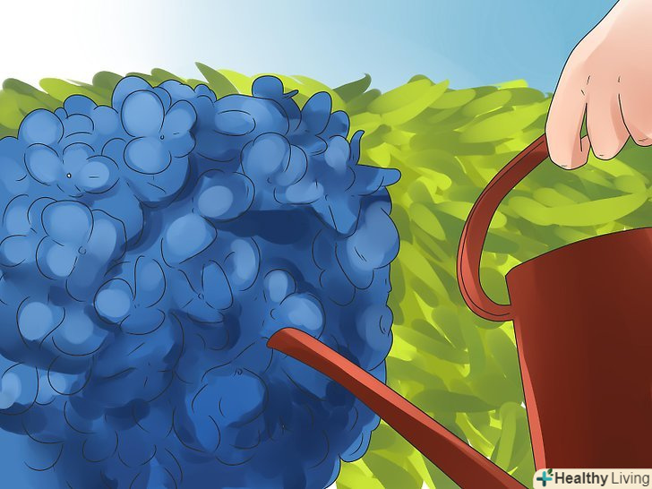 - Маленькими ручними граблями вмішайте елементарну сірку в верхній шар грунту (1 - 2 дюйма), потім рясно полийте цю ділянку, щоб сірка вбралася в грунт. Елементарну сірку потрібно буде час від часу використовувати повторно, щоб квіти зберігали свій синій колір.