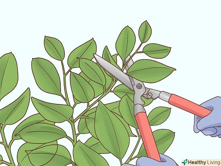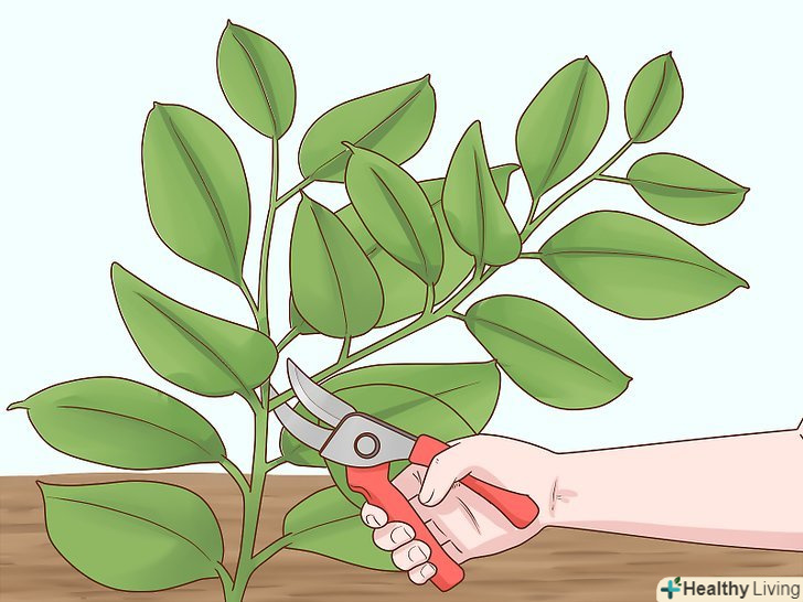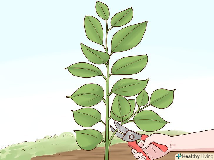 - Каучуконоси можуть виростати в приміщенні до 3-4 метрів, тому подрежьте дерево, коли захочете зупинити його подальше зростання у висоту. Можна підрізати і зростаючі на вулиці дерева, щоб отримати рослини потрібної висоти. [19]