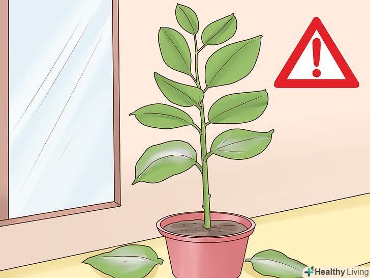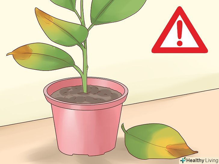 Якщо ви тримаєте дерево в приміщенні, стежте, чи не потьмяніли листя і не опадають вони знизу. ці ознаки свідчать про те, що рослині недостатньо сонячного світла. Щоб повернути листю колишній блиск, переставте горщик в інше, краще освітлене місце. [22]- У дерева може також занадто подовжитися голий стовбур знизу. Це означає, що рослина тягнеться до світла, в результаті чого його стебло може виглядати довгим і косим.