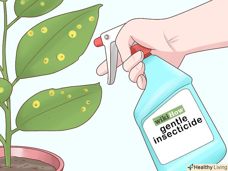 Використовуйте м'який інсектицид, якщо виявите, що дерево заражене комахами. хоча на дереві можуть з'являтися окремі комахи, серйозне зараження небезпечно для його здоров'я. Якщо ви виявили, що листя або стовбур пошкоджені комахами, використовуйте м'який інсектицид, щоб позбутися від зараження. [24]