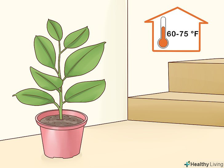 Виберіть для рослини тепле приміщення. каучукове дерево віддає перевагу температурі 16-24 °C, тому відведіть для нього досить тепле місце. Рослина погано переносить холод, так що простежте, щоб в обраному приміщенні не було сильних протягів. [5]- Температура не повинна опускатися нижче 13 °C.