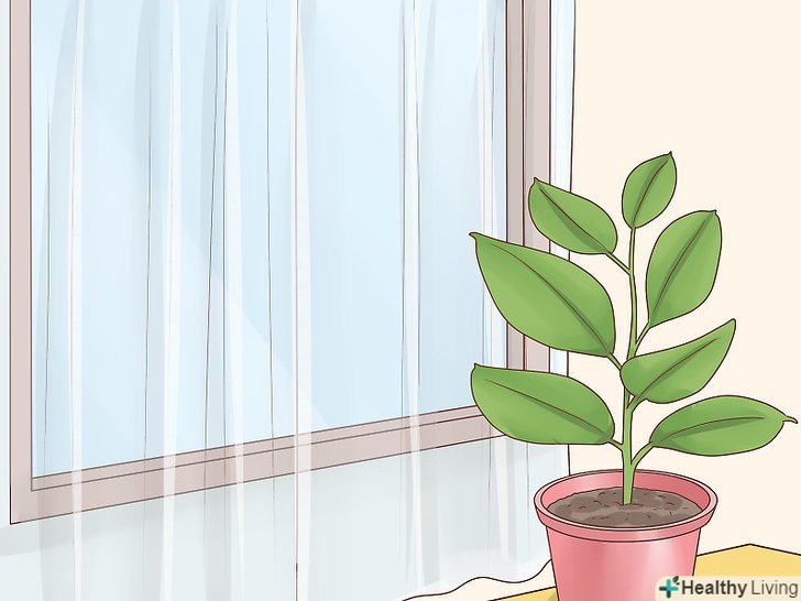 Розмістіть каучукове дерево в такому місці, куди потрапляє непрямий сонячне світло. як правило, пряме сонячне світло занадто різке для каучуконоса. Розташуйте горщик з рослиною біля вікна з тонкою фіранкою. У цьому випадку сонячне світло не буде занадто яскравим. Якщо ви збираєтеся посадити дерево у відкритий грунт, виберіть тінисте місце, в яке потрапляє непрямий сонячне світло. [6]- Можна також розмістити рослину в добре освітлюваної сонцем кімнаті так, щоб на нього не падав пряме сонячне світло.