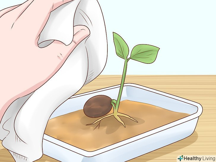 Можна виростити втечу не з держака, а з насіння. покладіть насіння на невеликий піднос. Накрийте його тонкою тканиною або паперовим рушником і обприскуйте водою кілька разів на день, щоб насіння залишалося вологим. Поставте піднос в місце, освітлюване непрямим сонячним світлом. Насіння має прорости приблизно протягом тижня, після чого його можна пересадити в невеликий горщик.- Зачекайте, поки насіння пустить коріння, перш ніж пересаджувати його. Дійте акуратно, так як молоді пагони дуже ніжні.