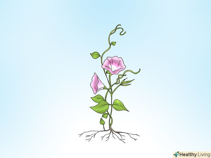 Зверніть увагу на цвітіння широколистих бур'янів. широколисті бур'яни відносяться до квітучих злакоподібних бур'янів з широким листям, прожилки на яких зазвичай сітчасті.- Розгляньте листя широколистого бур'яну. на відміну від трав'янистих бур'янів, головною відмінністю яких є квіткові головки, широколисті бур'яни можна виявити завдяки особливостям зростання.