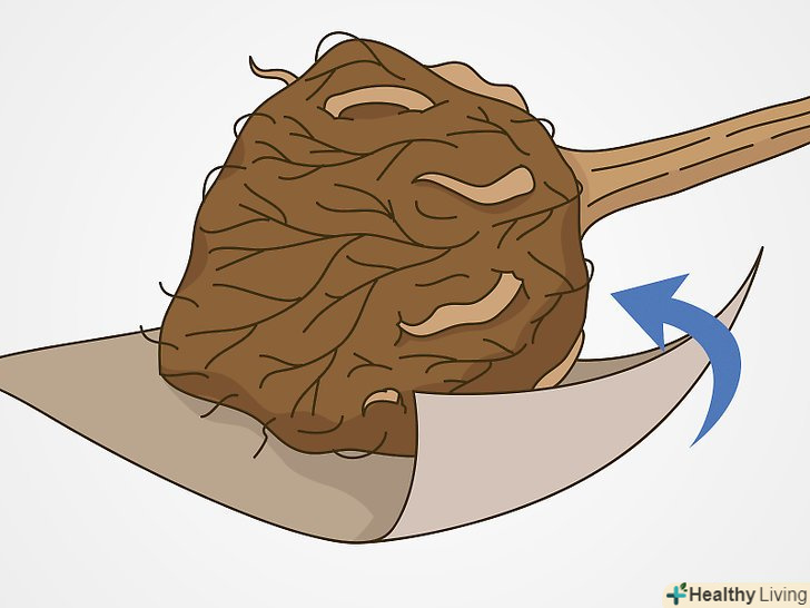 Загорніть кореневий кому в плівку або брезент, якщо дерево потрібно перевезти. якщо до місця пересадки далеко, помістіть кореневий кому в середину пластика або брезенту, оберніть коріння, щоб захистити їх і землю на них, і перев'яжіть мотузкою навколо стовбура. [10]- Намагайтеся не трясти кореневий кому під час транспортування. Через трясіння земля буде обсипатися з коренів, а повітря буде надходити до коріння і висушувати їх.