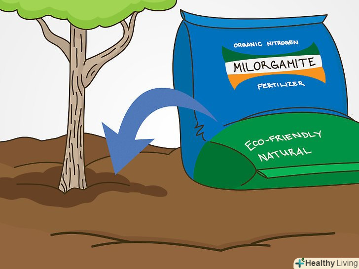 Удобрюйте дерево кожні 2-3 тижні восени або навесні. Наносите добриво на поверхню землі, коли помітите, що на дереві з'явилися нові пагони, і поливайте після кожного разу. Не використовуйте азотні добрива пізнім літом - це можна робити тільки в тому випадку, якщо дереву не вистачає поживних речовин, інакше дерево буде менш стійким до зимових морозів через появу нових гілок, які не встигнуть зміцніти.- Якщо ви використовуєте добрива восени, робіть це після того, як листя опаде. Навесні удобрювати грунт слід до початку сезону зростання. Не удобрюйте дерево, якщо насуваються морози, оскільки мороз може знищити нові пагони.