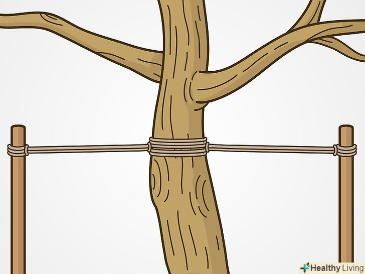 Встановіть підпори для дерева, якщо ви пересадили його в вітряне місце. розмістіть металеві або дерев'яні кілочки або металеві трубки на відстані метра від стовбура. Потім прив'яжіть дерево до підпорів за допомогою мотузки так, щоб дерево залишилося у вертикальному положенні. [15]- Щоб мотузка не перетирала кору стовбура, можна підкласти під неї великі тріски або розрізаний шматок садового шланга.