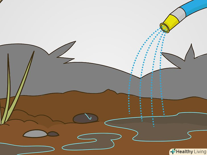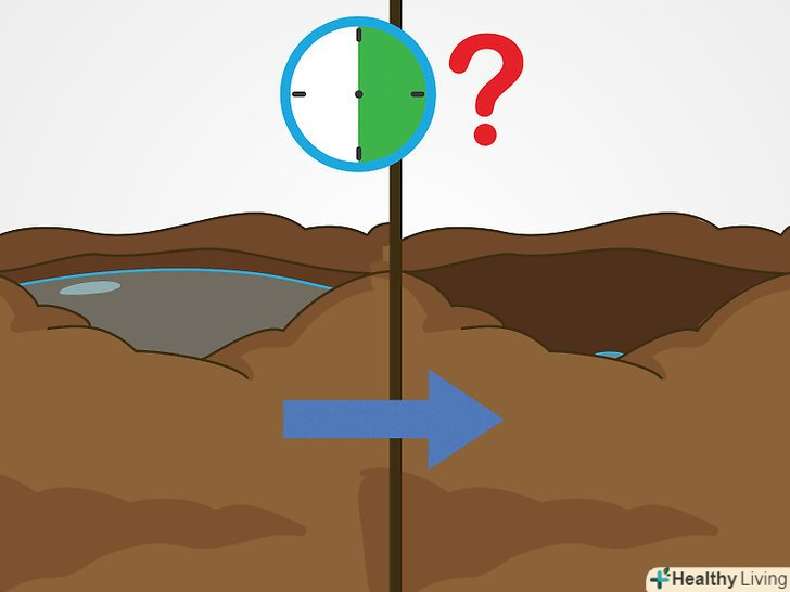 Поливайте дерево 18-25 літрами води раз на тиждень. зазвичай цієї кількості води пересадженим деревам і чагарникам досить, хоча нерідко полив залежить від погоди і якості грунту. Якщо грунт добре дренується і містить багато піску, поливати дерево потрібно великою кількість води. Глинисті грунти утримують воду і вимагають додаткового дренажу. [13]- Викопайте яму 10-20 сантиметрів глибиною і помацайте землю руками. Якщо вона суха або злегка волога, вам потрібно більше води.