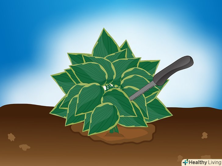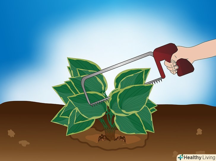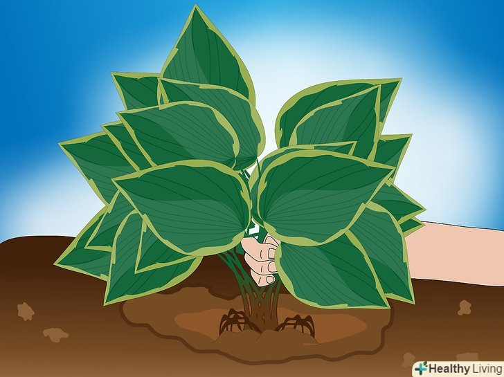 Виріжте або викопайте хосту, починаючи в 10см від основи невеликого рослини або в 35 см від основи хости з великим коренем. Після того як ви виріжете коло навколо брили, підкопайте лопатку під грудку кореня і витягніть його з землі або вирвіть корінь із землі за допомогою вилки.