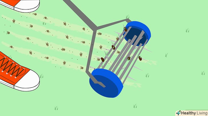 Подбайте про гарну циркуляцію повітря, влаштувавши аерацію газону. недостатня циркуляція повітря призводить до застою вологи, а там, де є надлишок вологи, будуть з'являтися гриби. Придбайте в господарському магазині аератор грунту і пройдіться їм по всьому газону. Аератор проколює отвори в грунті, допомагаючи зробити її більш легкою і повітряної. [8]- Подумайте про застосування аератора, щоб не дозволити грибам вирости в застійному сирому середовищі.