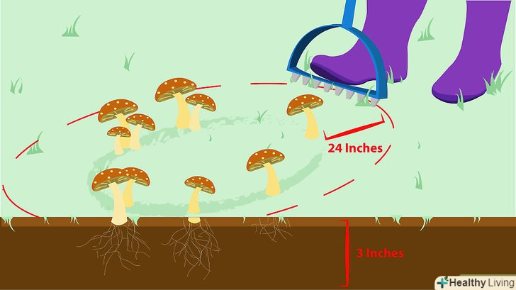 Обробляйте відьомські кола аератором грунту, якщо грибниця росте не глибше 7,5 см. почніть аерацію на 60 см далі кільця і поступово просувайтеся до його центру. [10]