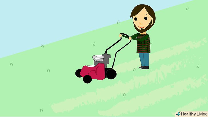 Очищайте газон від скошеної трави, щоб знизити затінення і поліпшити циркуляцію повітря. [7]- Вручну пройдіться по газону граблями.