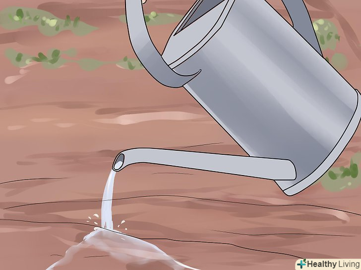 Створіть земляний бар'єр. насипте бар'єр з грунту — щось на зразок виступу або дамби навколо всієї ями. Це допоможе щойно посадженому дереву утримувати вологу. Коли бар'єр готовий, можна поливати. Цей захід гарантує, що коріння Пальми будуть досить зволожені і не засохнуть. [4]