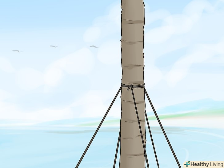 Підіпріть дерево, щоб підтримувати його рівним, якщо це необхідно. у пальми невелика коренева система. Тому її потрібно тимчасово підтримувати, поки коріння не зміцніють. Виняток-якщо ви використовуєте гіпсову штукатурку на піщаній основі для зміцнення. Цей матеріал зазвичай забезпечує хорошу стійкість, і вам не знадобляться підпори.- Оберніть стовбур мішковиною шириною 40 см принаймні на 1/4 його висоти, щоб утримуючі дошки не пошкодили кору, якщо дерево почне розгойдуватися при сильному вітрі.