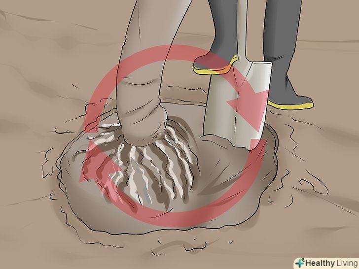Зніміть обгортку з кореневої грудки (зазвичай це шматок мішковини або плівка). постарайтеся не струшувати землю з коренів сильніше, ніж це потрібно. Від цього вони можуть пересохнути, а тонкі, волосоподібні кореневі відростки і зовсім можуть загинути. Також не слід підрізати коріння перед висадкою. Хоча вам може здатися, що ви даєте коріння можливість дихати, цей процес насправді більше травмує кореневу систему, ніж йде їй на користь.