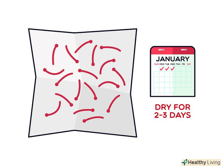 Висушіть і приберіть шафран на зберігання. після того, як Ви обережно дістанете всі рильця, викладіть їх на паперовий рушник і залиште в теплому сухому місці. Зачекайте 1-3 дні, щоб вони повністю висохли. [12]- Сушений шафран необхідно тримати в прохолодному сухому місці.