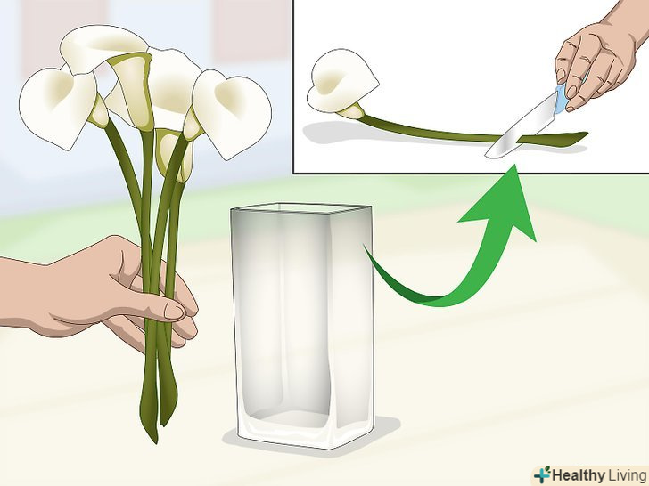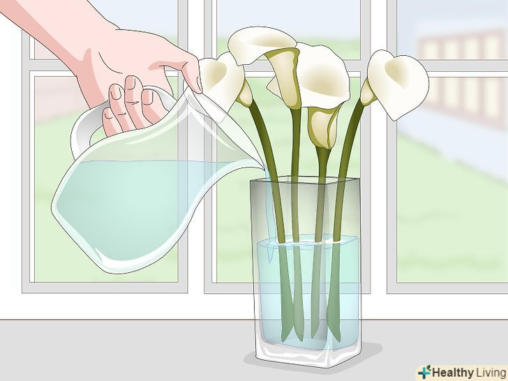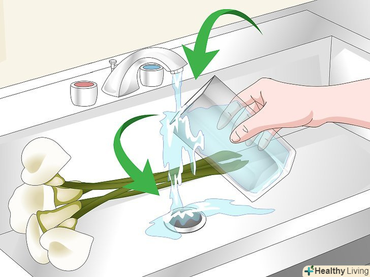 Купуйте глибоку вазу для високих калл, щоб уникнути їх здавлювання. вам буде потрібна глибока ваза для високих калл. Використовуйте дуже чисту вазу; деякі флористи чистять вази, використовуючи суміш мила і невеликої кількості відбілювача.- Ретельно промийте після цього видаліть залишки миючого засобу.