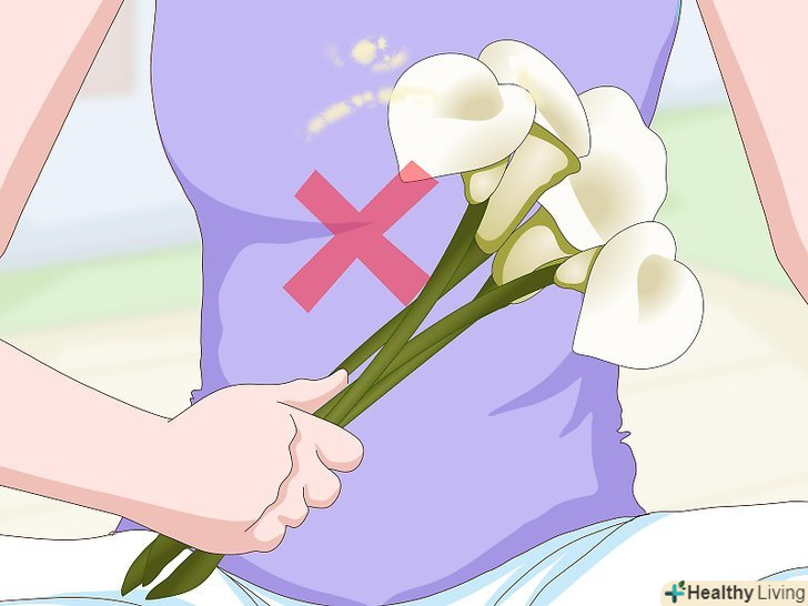 Уникайте пилку калл, щоб уникнути фарбування. пилок кали забруднить одяг. Ви можете видалити "початок" - це жовта пальцеподібна річ всередині суцвіття-але це зруйнує зовнішній вигляд квітки.- Це найкращий варіант, уникнути фарбування тільки будьте обережні, коли працюєте з квітами.