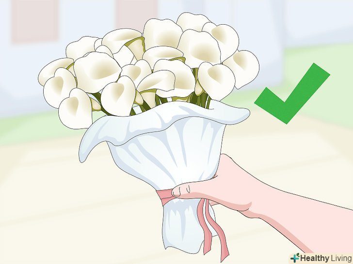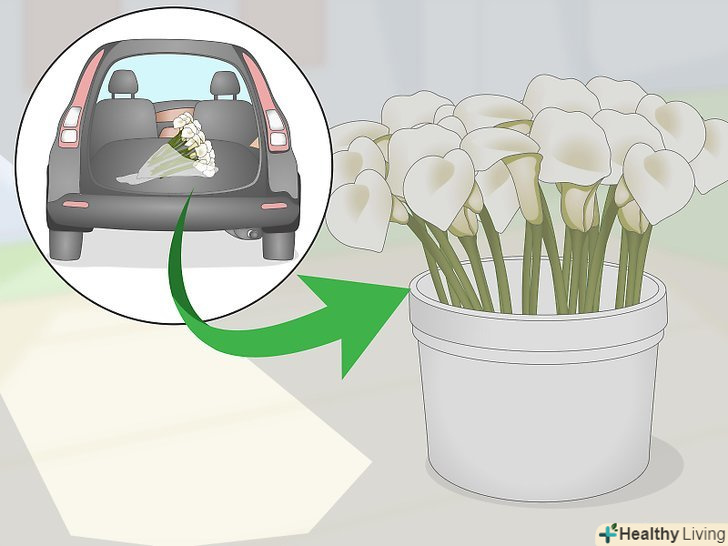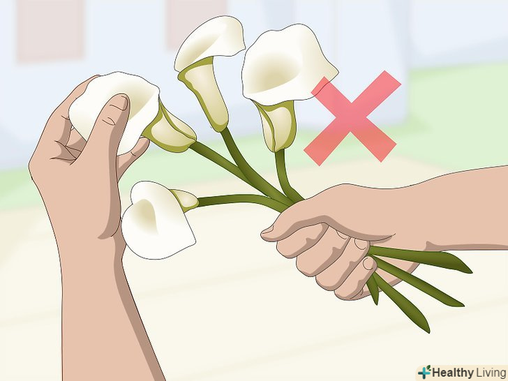 Знайте, що на каллах легко залишаються пом'ятості, не пошкодити їх. Кали дуже тендітні квіти. Чим менше ви торкаєтеся їх, тим краще.- Особливо уникайте доторкатися до квіткових голівок.