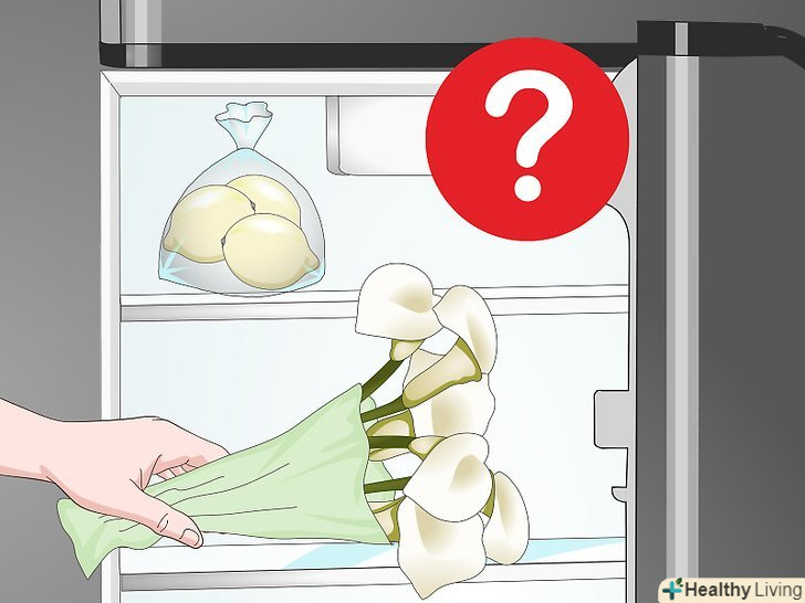 Будьте обережні при прийнятті рішення, чи варто зберігати квіти в холодильнику. деяким людям подобається тримати вазу в холодильнику вночі, щоб зберегти життя своїх квітів-але майте на увазі, вам потрібен великий холодильник для цього!- Погана ідея виставляти кали в газ, званий етилен, який виробляється деякими продуктами, тому Зберігайте ваші лілії тільки в порожньому холодильнику.