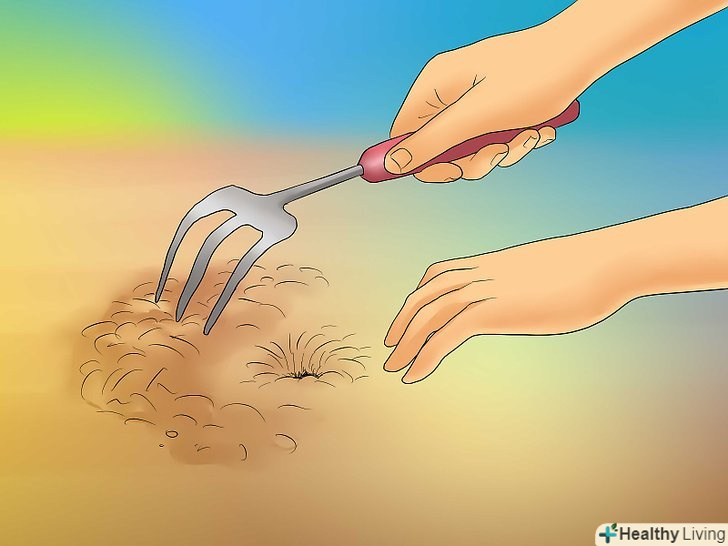Виройте лунку достатньої глибини. Лунка повинна бути досить глибокою, щоб коріння могли вільно поміститися в ній і не згинатися.- Лунка повинна бути як мінімум в два рази більше кореневої грудки того саджанця, що ви збираєтеся посадити.