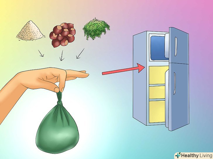 Зберігайте каштани для їх використання в якості насіння. якщо каштани Вам необхідні не для їжі, а для подальшої посадки, тоді перш ніж помістити їх в холодильник, ви повинні протягом декількох днів дати їм висохнути в прохолодному, відкритому приміщенні.- Помістіть каштани в поліетиленовий пакет з мокрим сфагнумом, торф'яним мохом або тирсою. Скріпіть пакет закруткою і помістіть в свій холодильник.