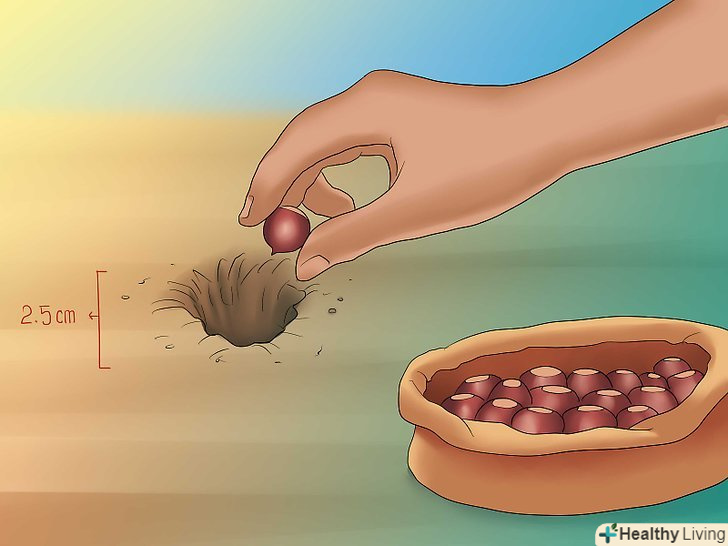 Помістіть насіння в неглибоке отвір. виройте ямку приблизно 2,5 см в глибину. Помістіть насіння каштана в отвір і засипте його грунтом або субстратом.- Так як під час посадки більшість каштанів вже пророслі, дивіться, щоб паросток був внизу, коли ви посадите горіх.
