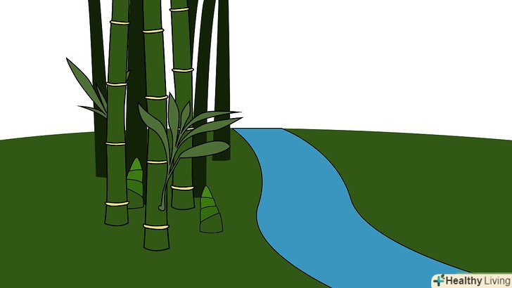 Можна обмежити бамбук з одного боку ставком або струмком. при правильному плануванні ставок або струмок в поєднанні з тристороннім огорожею послужать не тільки декоративним, але і ефективним способом стримування поширення бамбука. Сам струмок буде виконувати роль четвертої стінки, так як ризоми бамбука не здатні проходити через воду.- Періодично перевіряйте ризоми, які намагаються перебратися через огорожу. якщо ваша огорожа має достатню глибину і зібрано правильно, то у бамбука не буде особливих можливостей для зростання. Тим не менш, спостереження ніколи не буде зайвим. Якщо ви все ж помітите непокірні ризоми, то їх слід повністю видалити: зріжте їх нижче поверхні землі і використовуйте для боротьби один з вищенаведених способів.