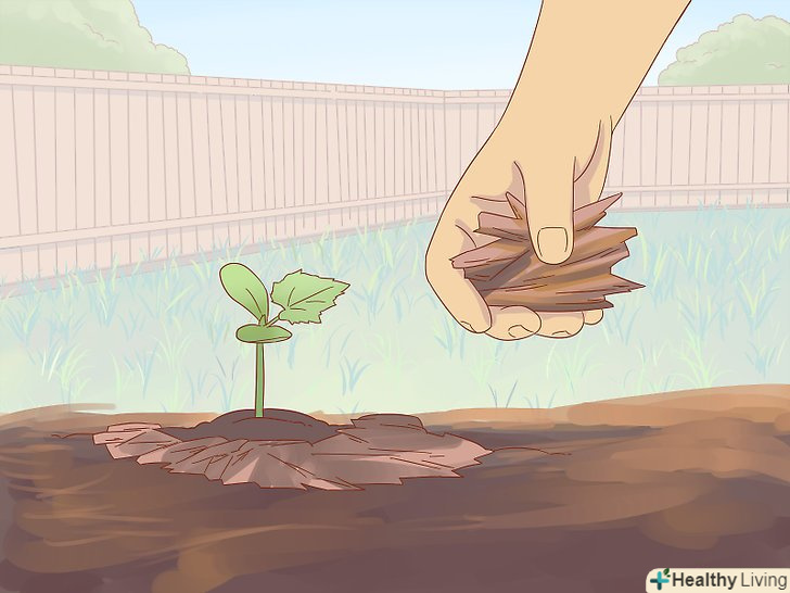 Додайте мульчу, як тільки проросте розсада. завдяки мульчі бур'яни, які можуть позбавити огірки поживних речовин, не повернуться. Крім того, вона допоможе грунті утримати тепло і вологу. Щоб грунт краще зберігала тепло, використовуйте темну мульчу. [17]- Якщо ви використовуєте солому або тирсу, почекайте, поки грунт прогріється хоча б до 21 °C.