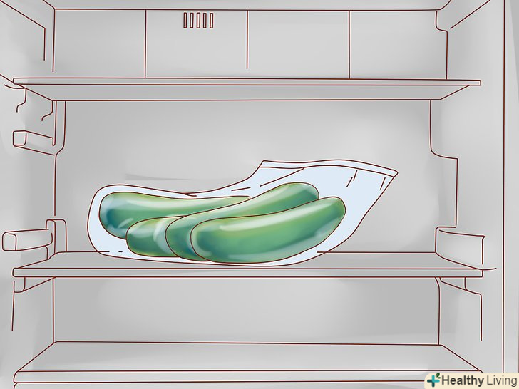 Покладіть огірки в холодильник, щоб вони стали хрусткими. постарайтеся використовувати огірки якомога швидше після того, як ви зібрали їх, поки вони повністю зберегли свій смак і текстуру. При необхідності можна зберігати огірки в холодильнику 7-10 днів. [27]- Перш ніж класти огірки в холодильник, загорніть їх в поліетиленову плівку або покладіть в пластиковий пакет, щоб вони не висохли.