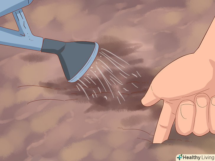 Зволожите грунт перед посадкою огірків. перш ніж садити огірки, застроміть палець в грунт, щоб перевірити її вологість. Якщо земля виявиться сухою до першого суглоба, полийте її перед посівом з невеликого шланга або лійки. [12]- Полив грунту перед посадкою насіння дозволить зменшити ризик того, що ви змиєте їх водою.