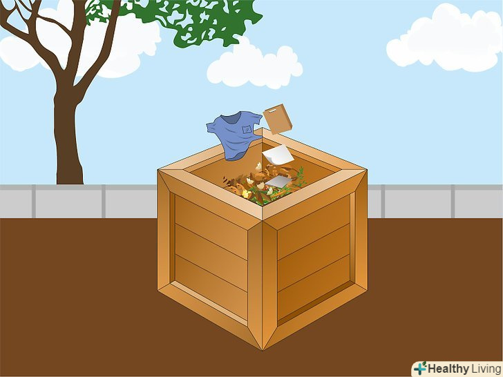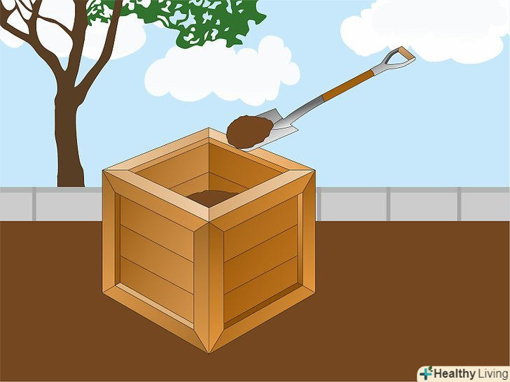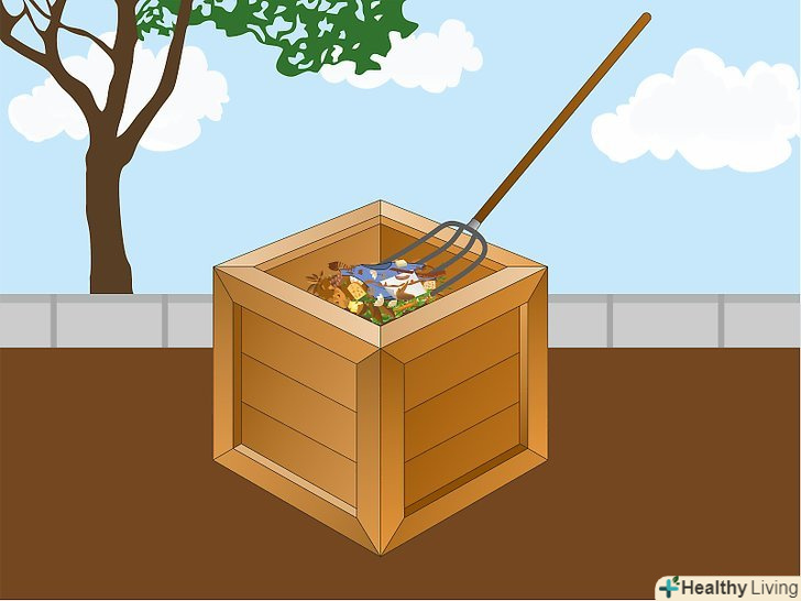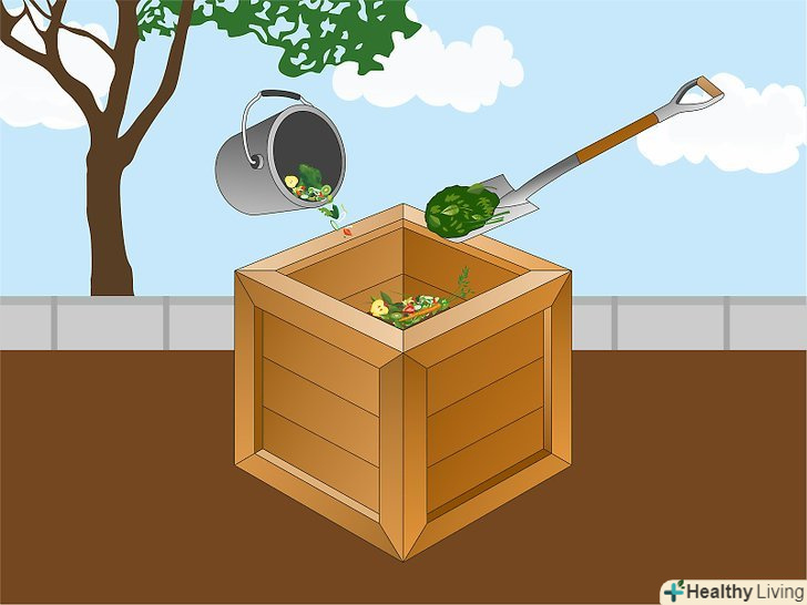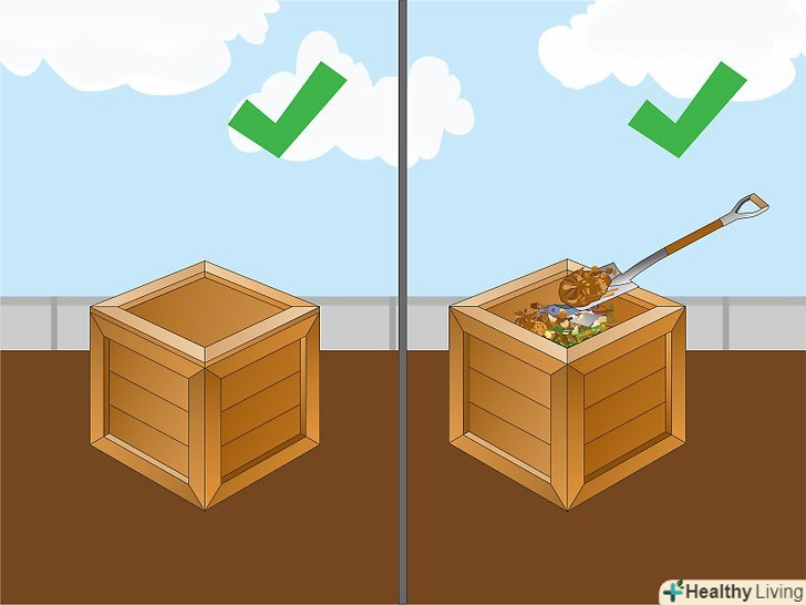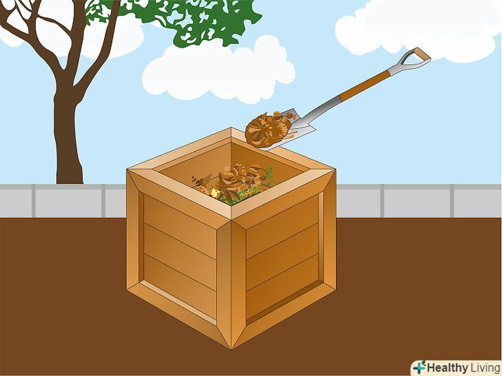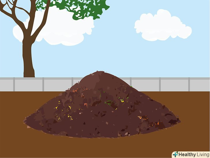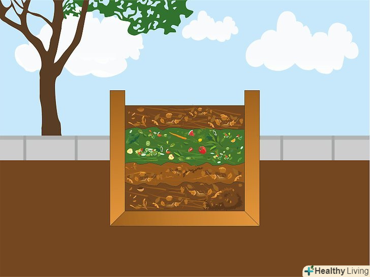 Виберіть місце для компостної купи. купа повинна розташовуватися не надто близько до будинку, щоб вам не заважали запахи і щоб шкідники, які будуть приходити на запах, не забиралися до вас в будинок. Купа може розташовуватися як в тіні, так і на сонці, але слід розуміти, що на сонці відходи будуть розкладатися швидше, проте їм потрібно буде більше води. Розташуйте купу так, щоб вам вистачало місця перевертати відходи. [1]- Найкраще розташувати купу на землі на відстані декількох метрів від рослин, а не на плитці або дерев'яній підлозі. Так перевертати компост буде простіше.